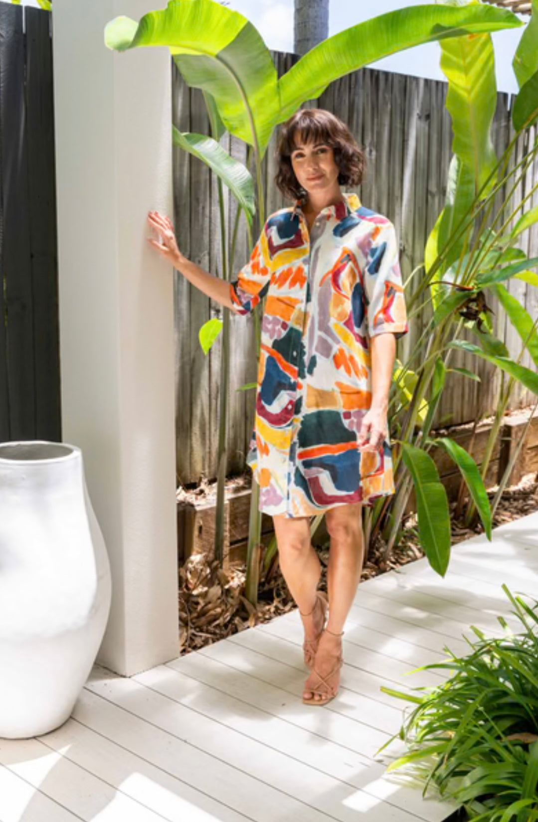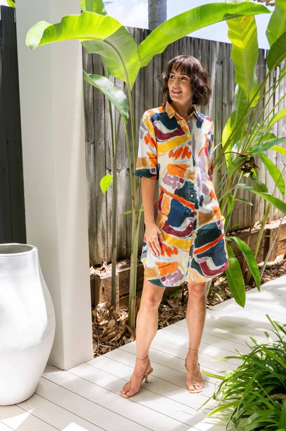 - Vibrant abstract print shirt dress